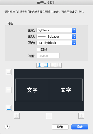 工具集::在已选定表格单元并打开“特性检验器”选项板的情况下,单击“全部”。在“单元”部分下,单击“边框样式”。