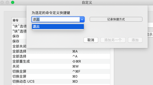 - 开始键入要为其指定快捷键的命令名。从下拉列表中选择一个命令。