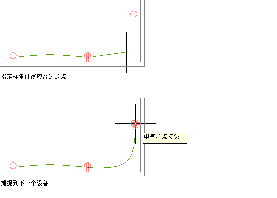 - 使用电气端点接头捕捉,指定要使用导线连接的第一个设备。