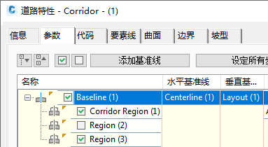 对于长道路或道路网络,可以创建多个区域以进行建模。一般情况下,道路区域用于标记不同装配的使用,并在一个装配的结束处和另一个装配的开始处具有区域边线。但是您也可以在不更改装配的情况下添加区域。其他区域的值为控件 — 您可以使用“道路特性”对话框关闭当前操作不需要的区域建模,如图 13 中所示。这可以提高道路重新生成的速度。
