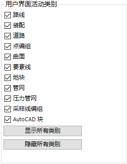 在 Project Explorer 中执行特定任务时,有时最好在未在使用中的 Civil 3D 窗口中禁用或隐藏任何 Project Explorer 对象类别。