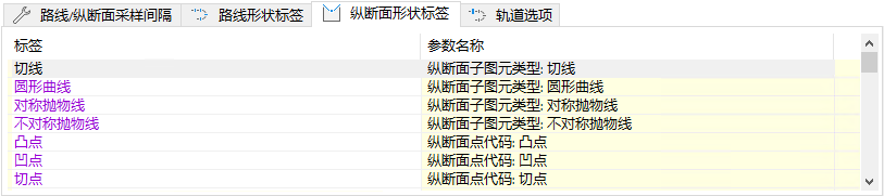 此选项集可控制 Project Explorer 用户界面中或引出报告、电子表格和 AutoCAD 表格中显示的纵断面图元类型、约束类型、曲线类型和点类型的任何可本地化或可自定义阶段