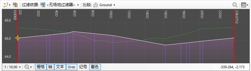状态栏沿每个纵断面图和横断面图的下边缘延伸,并包含许多常用控件。