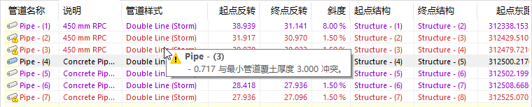 - 管道:{y} 与最小管道坡度 {x} 冲突。