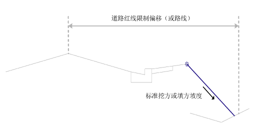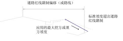 如果标准坡度位于道路红线范围以外,则将使用更陡的坡度。如果该更陡的坡度仍然位于道路红线范围以外,则用户可以选择对行为进行控制。