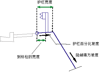 使用“陡峭填方坡度”的填方坡度的护栏加宽连接的宽度。使用零表示不加宽护栏。 |