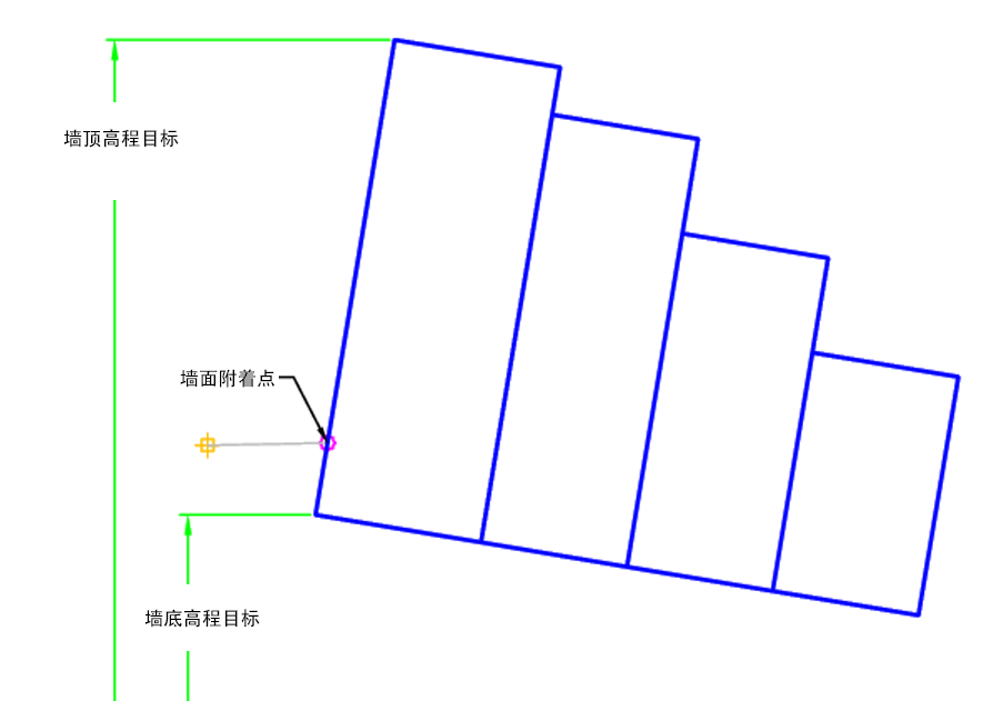 | 墙面 | 可用于设置在墙面高程点。以下对象类型可用作用于指定高程的目标:纵断面、三维多段线、要素线或测量地物。 | 可选(附着点 = 墙顶) |
