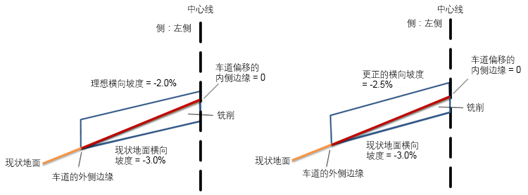 注: 是加上还是减去坡度公差取决于哪一项将使原地面横向坡度的值与理想横向坡度更接近。