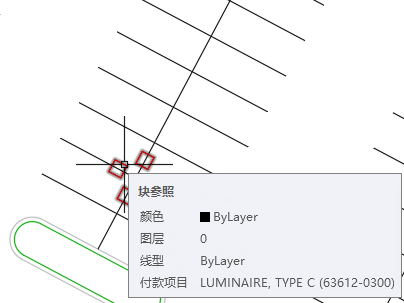 - 在图形中选择其中一个表示停车场灯的块。