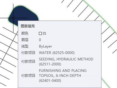 在本练习中,您会将付款项目代码指定给多个 AutoCAD 对象,包括线、块和闭合多段线区域。