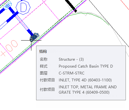进一步研究:在网络中的其他结构上重复此操作步骤,指定适合于方形集水池、检修孔和端壁的付款项目代码。