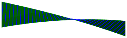 尽管这似乎是一个可展开的直纹曲面,但等值线是弯曲的。这可能会导致看起来很奇怪的刀具路径,因为 FeatureCAM 会尝试保持刀具的侧边与曲面接触,也就是说,刀具轴可能会完全不同。