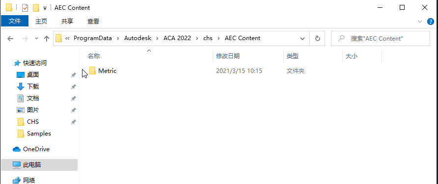 从“AEC 设计中心内容”复制路径,然后在文件资源管理器中打开此路径。