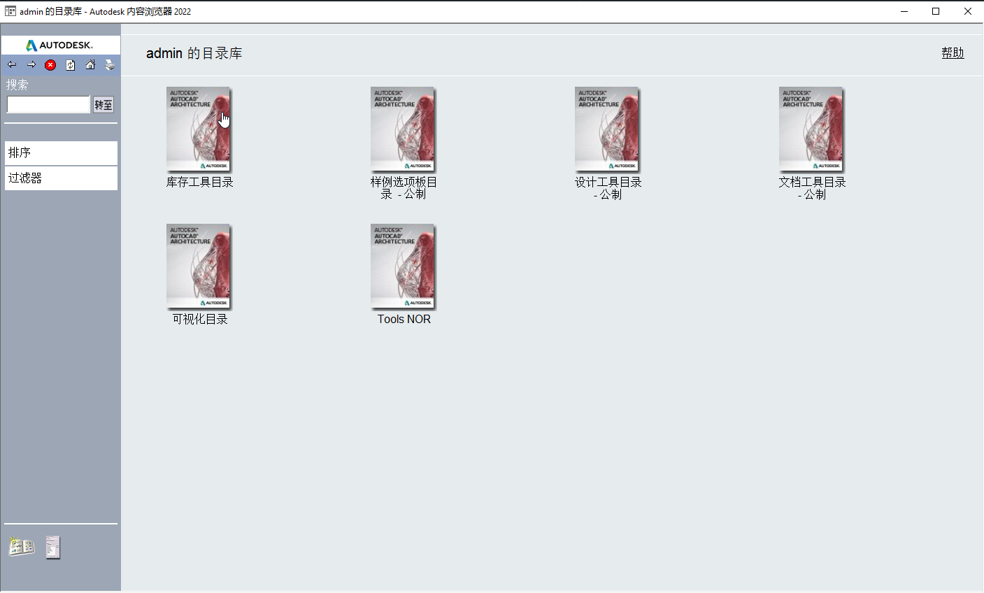在命令行中输入 CONTENTBROWSER,或选择“工具”->“内容浏览器”。