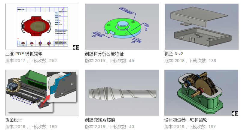 指导教程是帮助您快速入门的绝佳方式。将“类型”过滤器设置为“快速入门”,以查看介绍在工程图中绘制草图、对零件进行造型、创建部件以及为设计制作文档的基础知识的教程。