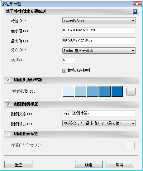 3. “多边形专题”对话框中,为“特性”选择“ValueByArea”。