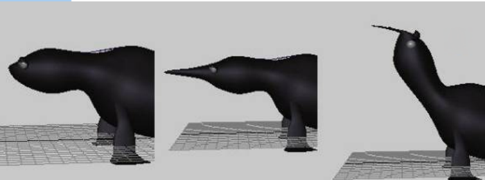 In the initial state, the seal shape is skinned to a skeleton so that rotating the various joints creates a smooth skinning deformation. Later, the seal's nose is grown by moving a few vertices in X axis. In this example, there is no tweak node, so the vertex deltas are stored in the shape node. Everything looks alright until the neck is rotated. Because the tweaks get added after the skinning deformation, the deltas move the nose vertices in X axis even though the seal's nose is no longer aligned with the X axis. To rotate the seal's neck without disfiguring the nose, the skinning algorithm must act on the seal's tweaked nose instead of having the tweaks act on the seal's skinned nose.