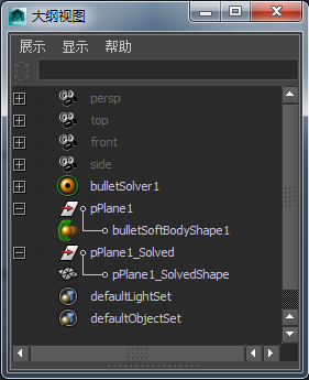 您可以从 Maya 多边形网格创建 Bullet 柔体。创建柔体时还将创建新的网格节点,其名称是原始多边形对象名加上后缀 Solved。