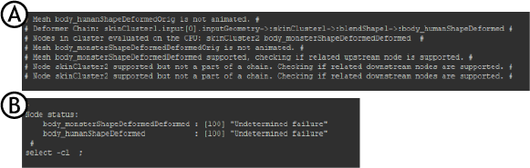 “网格信息”(Mesh Information)报告的脚本编辑器输出:A. 清理之前,B. 清理之后