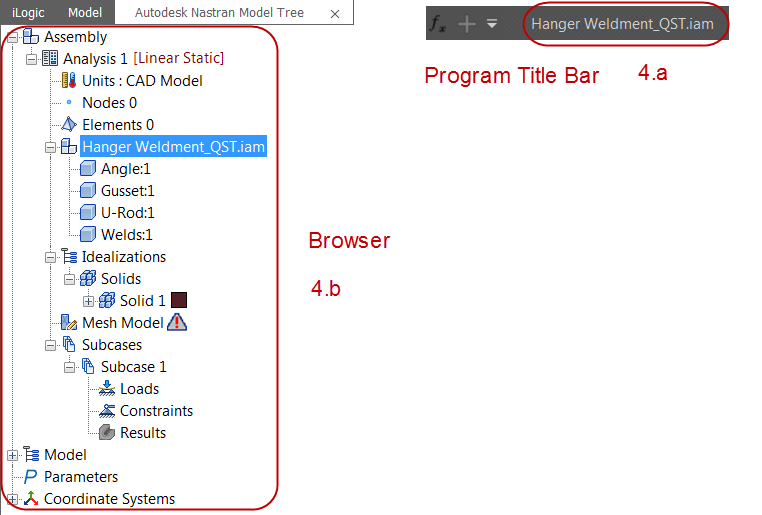 Inventor Nastran environment. The browser automatically shows the