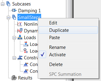 We create the second subcase by copying the first subcase and modifying the time step parameters.