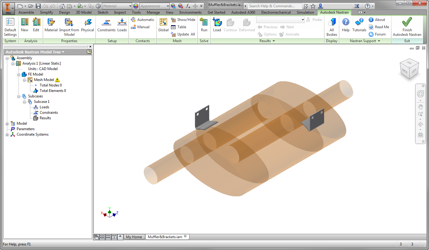 We'll use an Offset Bond contact between the brackets and the muffler shell to ensure that parts that don't touch are bonded together.