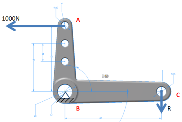 In this exercise, we will conduct a linear static stress analysis of a simple lever arm part. We will use boundary conditions often found in entry-level CAD-based simulation systems. Note that in later exercises we will build on the steps performed here to refine the analysis setup and improve the overall accuracy of the simulation.