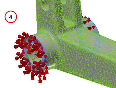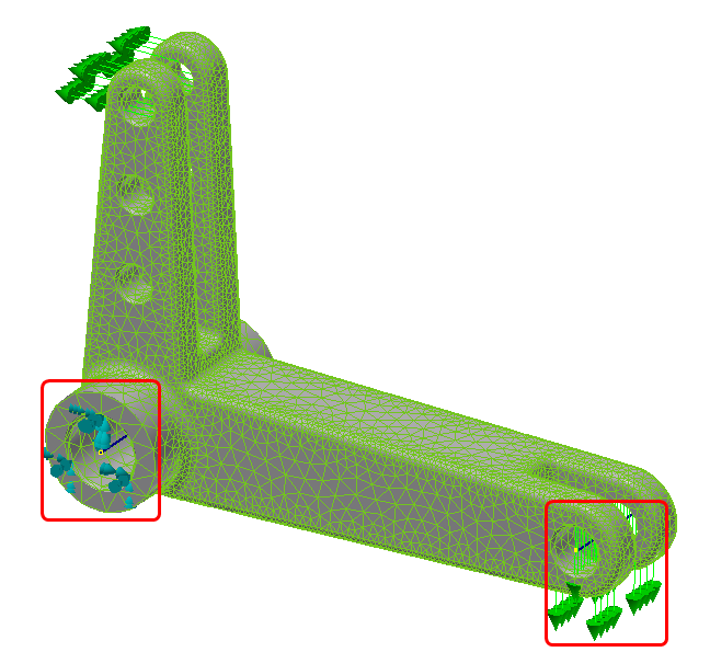 A commonly used technique in FEA is the 'ball joint' constraint to control rotations. The ball joint constraint uses rigid elements to control a reference point. The rigid elements are often called 'spokes' or 'spider webs', given their appearance. We tie the movement of an edge or surface to a reference point to allow for more natural movement. In Autodesk Inventor Nastran, this is done with a Rigid Connector: