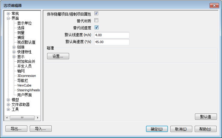 复选框,将能够设置一个特定速度以在载入模型时进行导航。