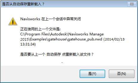 如果您不需要恢复您的工作,或需要手动载入其他备份文件,请单击“否”