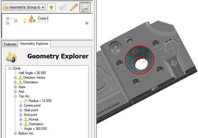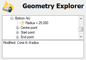 - 在“几何浏览器”选项卡中,单击要应用到选定项目的参数。您可以选择整个特征(例如,圆锥),或单击