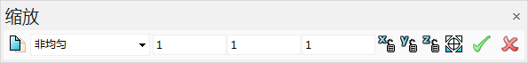 - 从下拉列表中选择“非均匀”。工具栏将更新以显示 X、Y 和 Z 的缩放系数框: