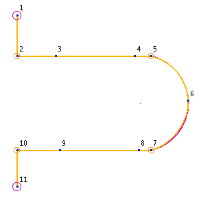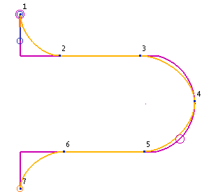 在此示例中,点 2 处于选中状态。在曲线上增加了一个拐角标记。
