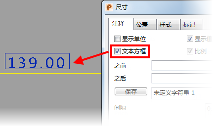 文本方框 - 选择此选项将围绕尺寸添加一个文本方框。