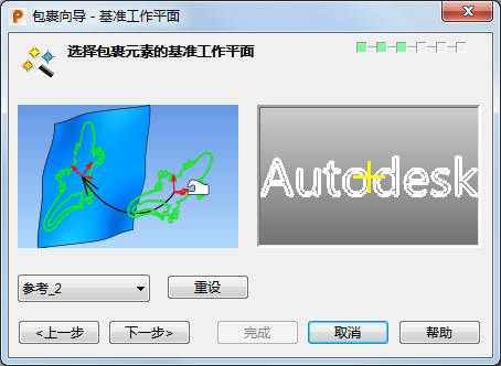 重设 - 单击此按钮可将参考工作平面重设为与选择的工作平面对齐。