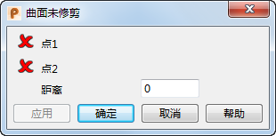 - 单击“曲面”选项卡 >“制造”面板 >“工具”>“未修剪”以显示“曲面未修剪”对话框: