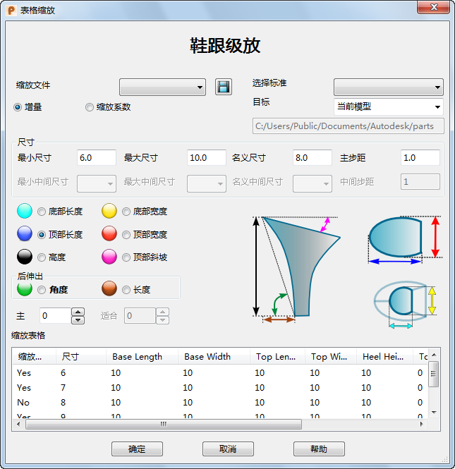 “鞋跟级放”向导使您可以通过单个鞋跟生成一系列级放鞋跟。