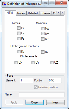 In the Definition of influence surface dialog, you can select the following result quantities on the successive tabs: