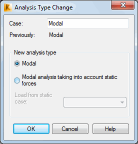 Use this dialog to change the type of analysis to Modal or to Modal analysis recognizing static forces.