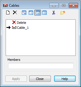 The Cables dialog lets you assign cable properties to structure elements. It has: