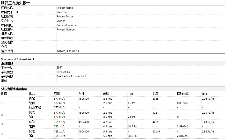 您可以为项目中的风管或管道系统生成压力损失报告。