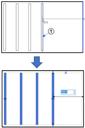 - 将尺寸标注编辑为“参照”以移动单个钢筋,或将尺寸标注编辑到钢筋操纵柄以更改集范围或钢筋几何图形(例如,对钢筋平面进行尺寸标注将调整集的布局)。