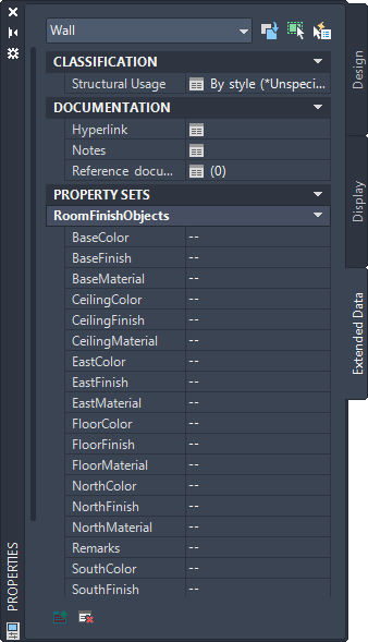 Note: The listing of the properties set definition in the Extended Data tab can be controlled using the Properties Override drop-down options in AEC Object setting tab in the Options dialog box.