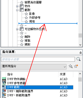 使用自訂使用者介面 (CUI) 編輯器建立、編輯或移除指令。您也可以將新指令加入下拉式功能表、工具列和功能區面板,或進行複製以顯示在多個位置。