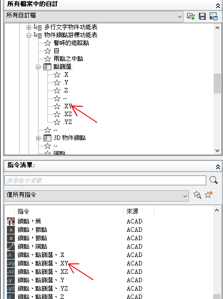 - 在「自訂」頁籤的「指令清單」窗格中,尋找您要複製的指令。