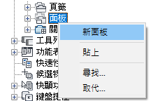 - 在「面板」節點上按一下右鍵。按一下「新建面板」。