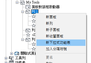 會在列的最後位置建立一個新下拉式功能表 (名為「新下拉式功能表」)。