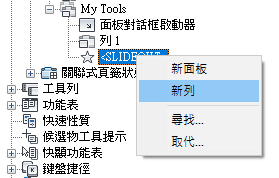 - 在列上按一下滑鼠右鍵,然後選擇「新子面板」或「新收闔面板」。