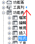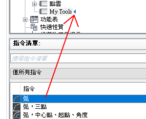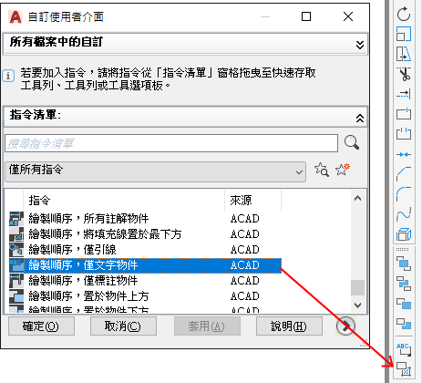 「指令清單」窗格僅會顯示工具列控制元素的清單。