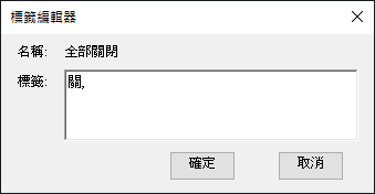在「標籤編輯器」對話方塊的「標籤」方塊中,輸入代表指令標籤的文字。